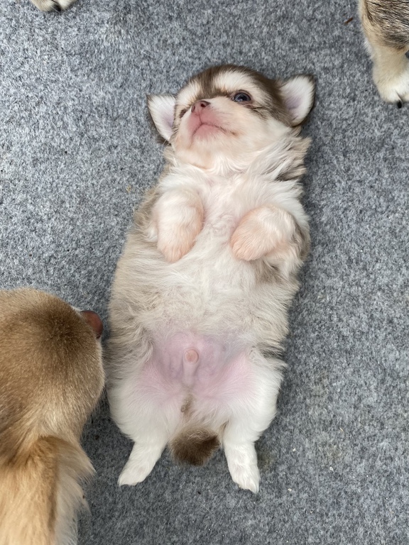 Haarkleid: schoko-husky, langhaar
